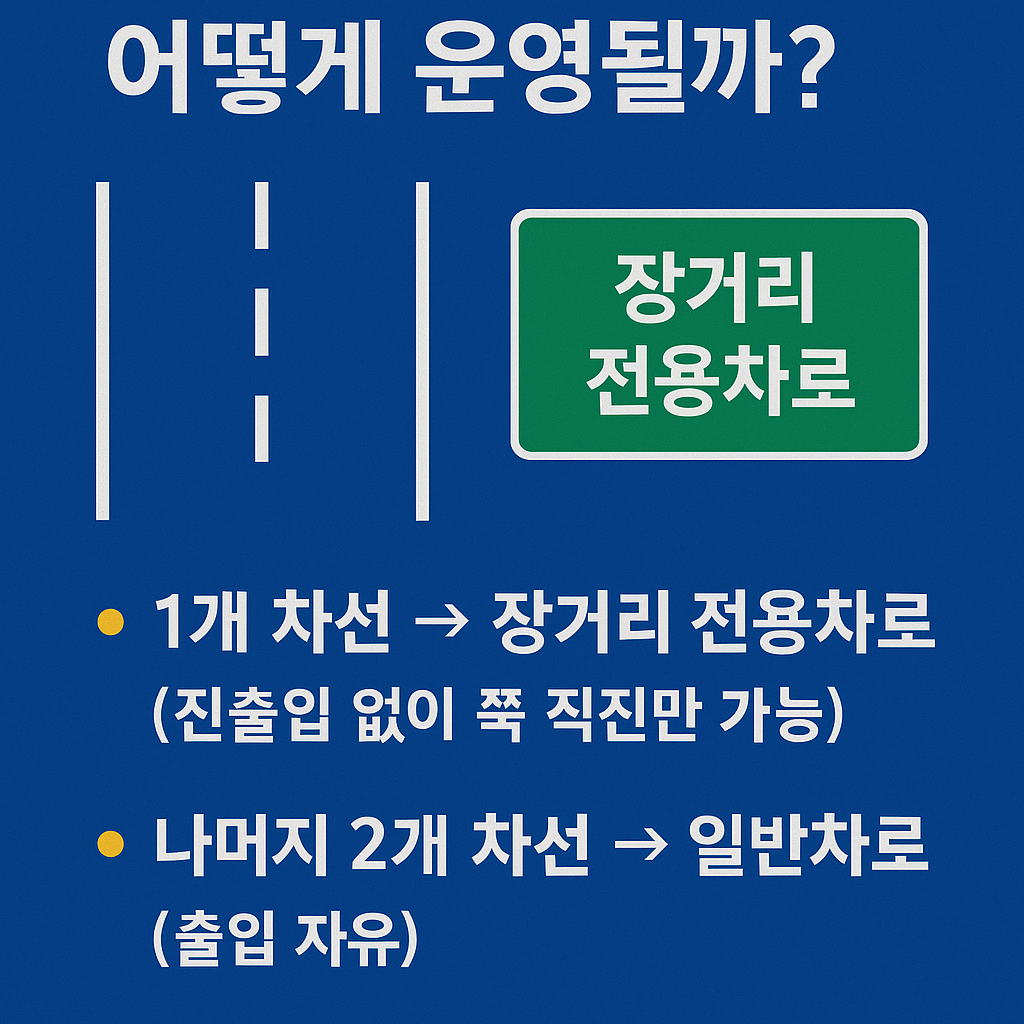 이 문제를 줄이기 위해, **‘장거리 전용차로’** 라는 새로운 제도가 도입됩니다.